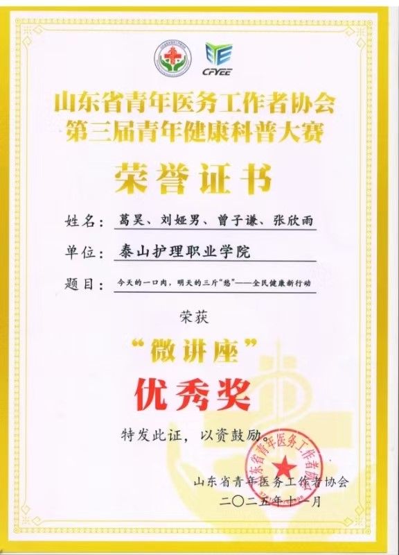 公共教学部艺术教研室持续深化“美育+医学科普”教学改革。在山东省青年医务工作者协会第三届青年健康科普大赛中,由葛昊老师指导的作品获评“微讲座”优秀奖。