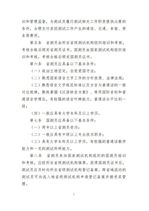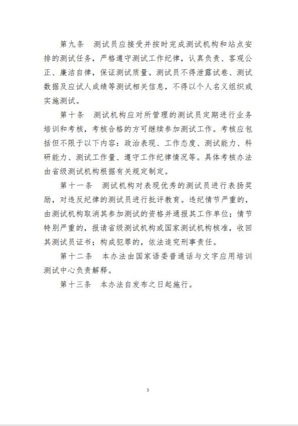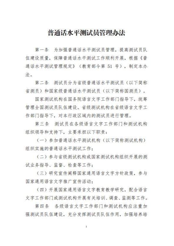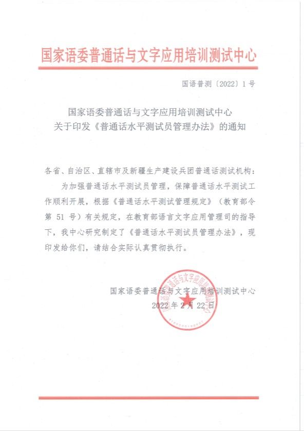 国家语委普通话与文字应用培训测试中心关于印发《普通话水平测试员管理办法》的通知