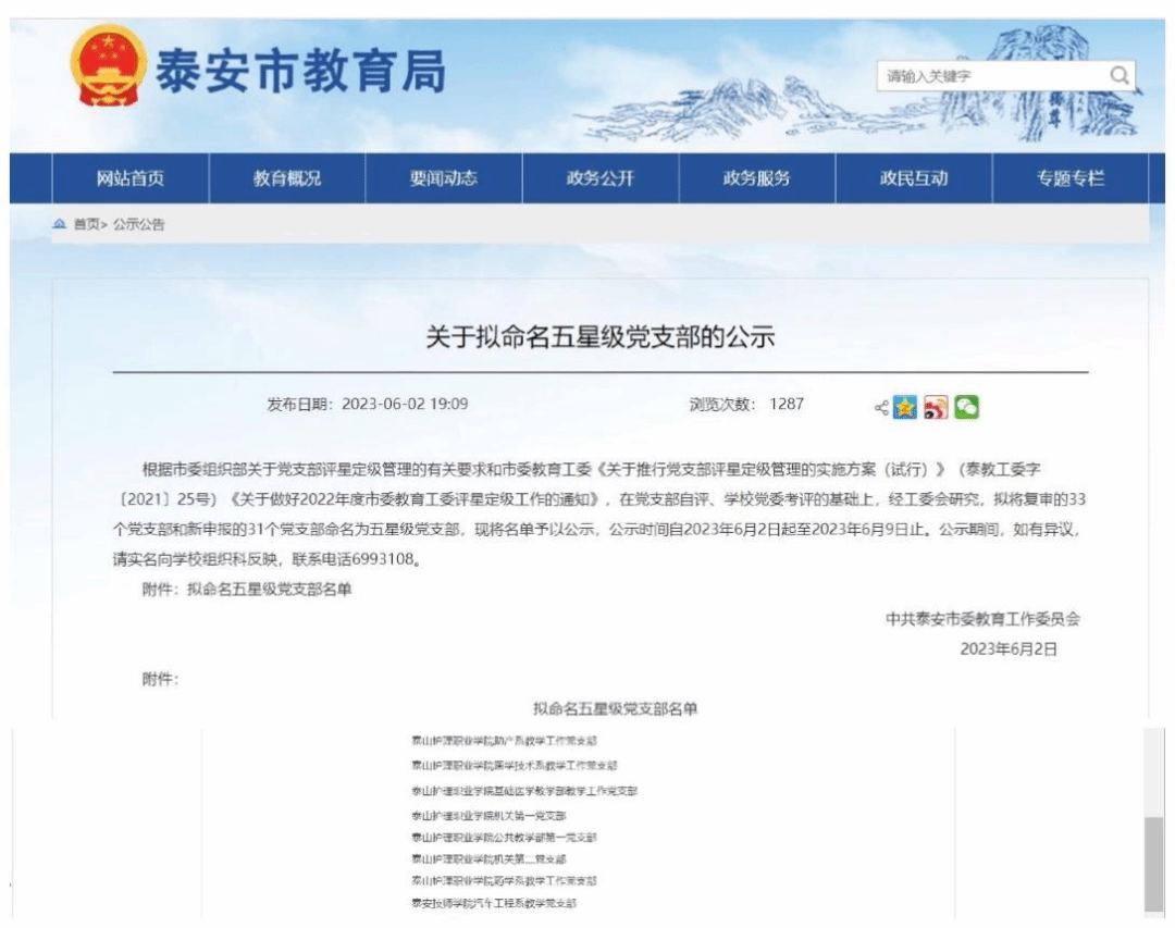 夯实政治建设,规范组织建设。公共教学部党总支始终秉持“围绕中心抓党建,抓好党建促发展”的理念,充分发挥总揽全局、协调各方的优势作用,把方向、管大局、作决策、抓班子、带队伍、保落实,将党的全面领导融入、内嵌到本部工作各个环节,健全完善党政工作机制,为实现教育事业内涵式发展提供了坚强保证,形成了党建引领促发展的良好格局。同时,着力提高两个党支部标准化规范化建设水平,做好对党员的教育、管理、监督和服务等工作。党建成果获得上级认可和表彰,公共教学部第一党支部继续保持泰安市教育工委五星级党支部称号。