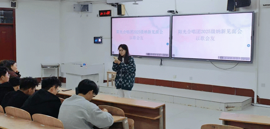 11 月 2 日,教学楼 1101 教室歌声悠扬,学院阳光合唱团 2025 年度纳新活动在此举行。活动主题为“以老带新传薪火,以歌会友聚知音”,吸引了全校 113 名音乐爱好者报名。通过视频作品提报、交流展演,既为合唱团注入了新鲜血液,也成为学校践行“以美育人”、丰富校园文化的生动实践。
