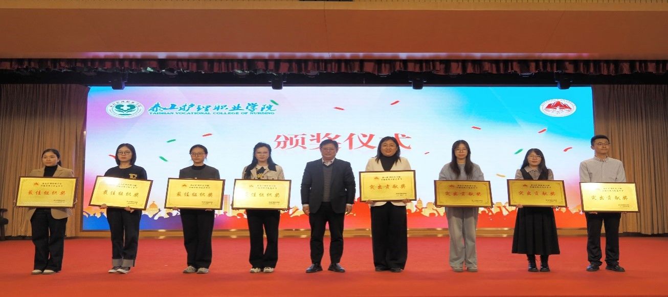 金风送爽,艺韵流芳。2025 年 11 月 19 日,我院首届金秋文化艺术节圆满落幕。本次活动由公共教学部协助宣传处举办,赵艳老师专业指导各类节目编排。闭幕式现场,歌伴舞《童年》、艺术歌曲《岳阳楼记》、舞蹈《燃动青春》、武术《破阵乐》、中提琴《雨》等节目异彩纷呈,展现了我院师生的艺术素养与昂扬风貌。在本届校园金秋文化艺术节中,公共教学部荣获 “突出贡献奖”。