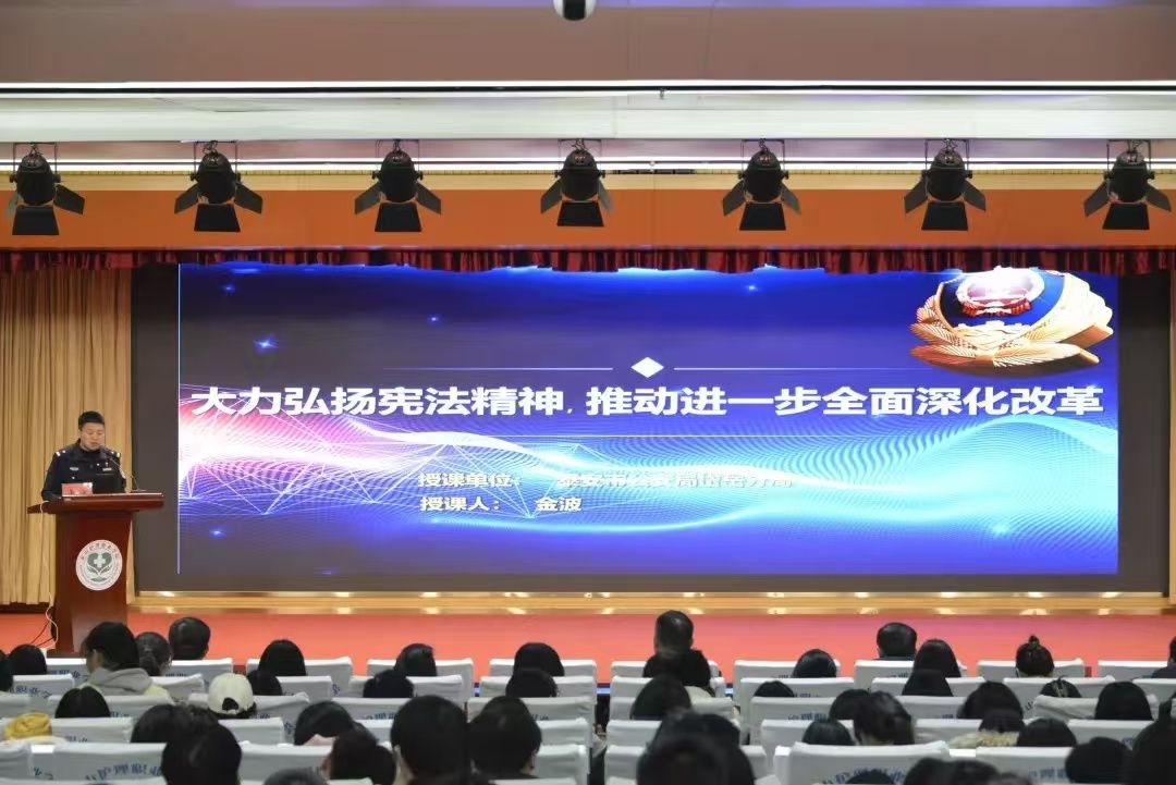 “大力弘扬宪法精神,推动进一步全面深化改革”法治文化进校园暨人文校园建设宣讲活动同时举办。学院邀请泰安市公安局岱岳分局法制大队三级警长金波,为学院师生带来一场精彩的主题报告。从大学生日常生活导入,以案说法,金波详细讲解了宪法中公民的权利和义务,并呼吁学生结合自身专业,脚踏实地投身进一步全面深化改革。