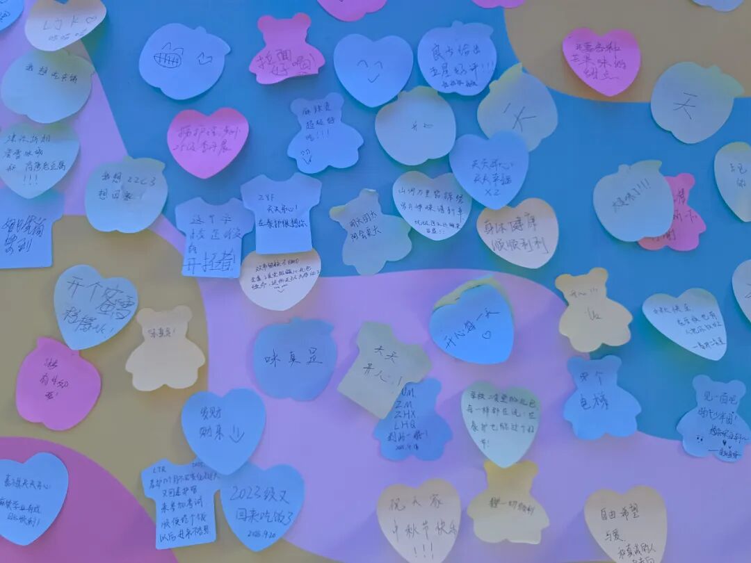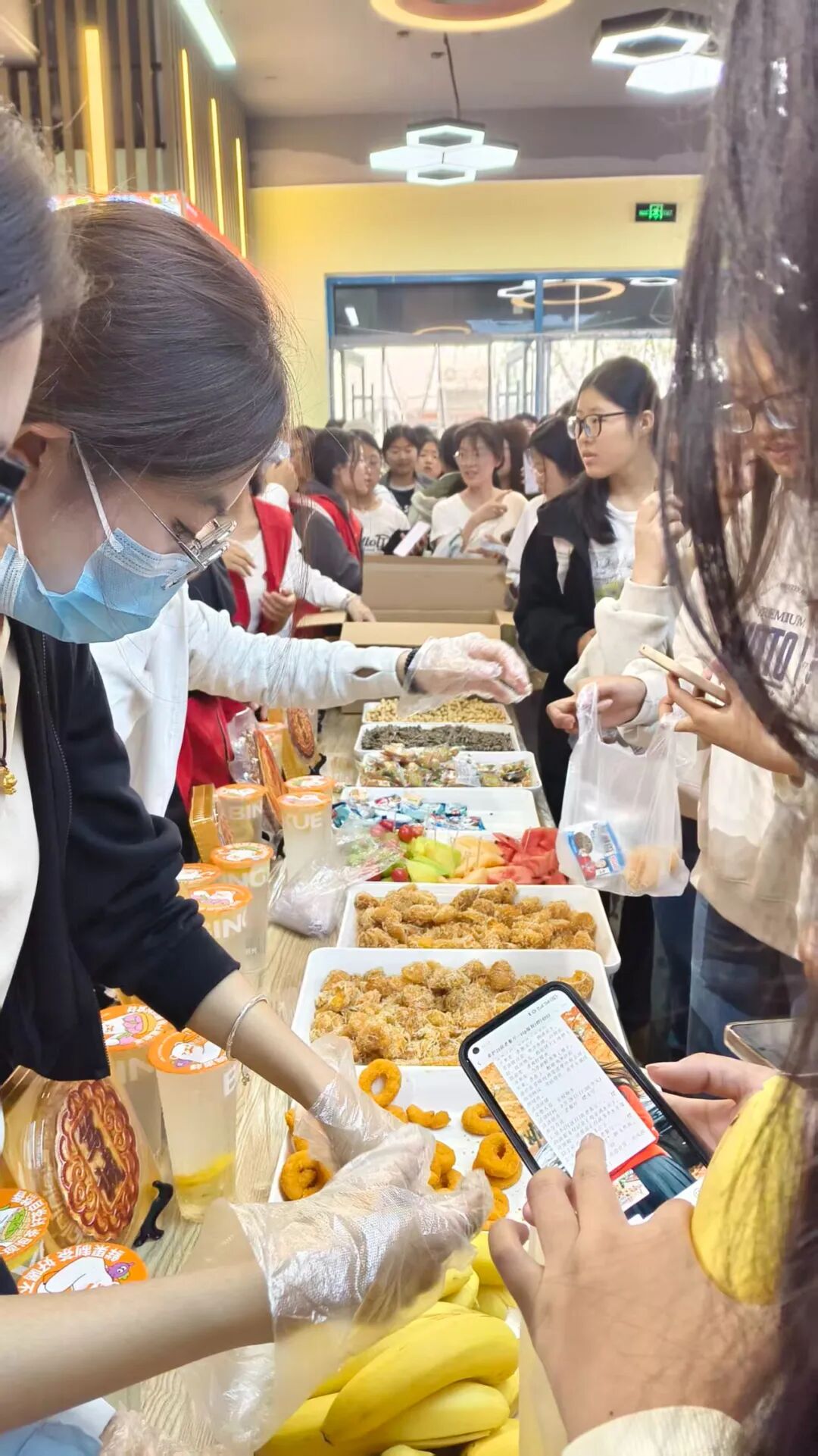 随着国庆、中秋双节的脚步临近,9月28日,二号食堂将这份温暖再度升级,推出“中秋礼遇·暖心升级”豪华礼包派送活动。同学们不仅领取到印有校徽的专属月饼,还收到了苹果、香蕉等时令水果以及瓜子、花生等节日小食。活动现场还特别设置了“月圆心愿墙”,大家纷纷提笔,写下对亲人的思念与对未来的憧憬。