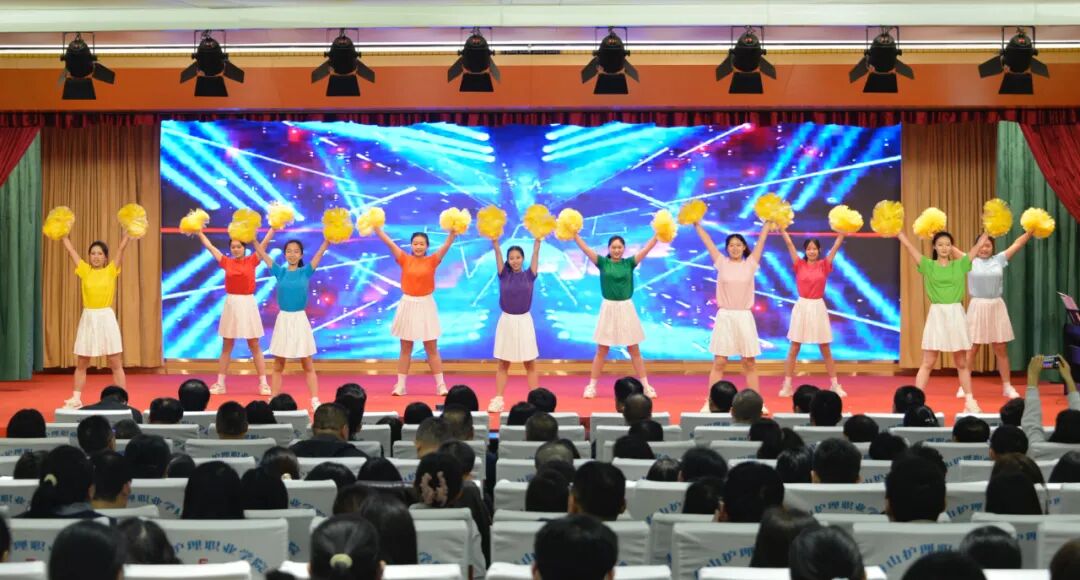 随后的节目展演精彩纷呈,健美操展现青春活力,合唱传递爱国情怀,太极拳弘扬传统文化,朗诵抒发师生心声,格斗表演彰显安保风采,赢得师生阵阵掌声。