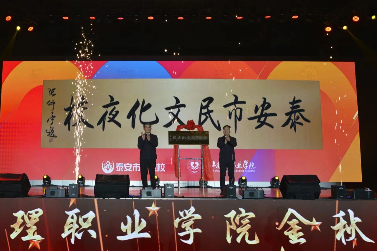 晚会节目精彩纷呈的间隙,一场意义深远的挂牌仪式为整场活动增添了庄重而富有展望的一笔。为深化校地合作,整合优质资源,泰安市民夜校与泰山护理职业学院携手,共同打造“泰安市民文化夜校”。在全体师生的见证下,何麦之与杨建全共同为夜校揭牌,标志着校地协同育人与文化服务共建迈出坚实一步。