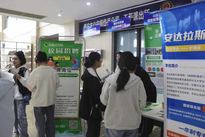 与此同时,“情系母校谋发展·校友赋能创未来”校友企业专场招聘会在图书楼一楼大厅同步开展。青岛希莱雅合美健康产业发展有限公司、泰安禾康中医医院、济南立健大药房等 25 家深耕医疗卫生领域的优质校友企业齐聚,带来护理、医疗管理、健康服务等多个方向的热门岗位150余个。招聘会现场,校友企业 HR 结合学校培养模式,与应届毕业生、在校生面对面沟通岗位细节与行业前景,学院学工处及各系部积极组织学生参会,助力学生精准对接心仪工作,提升求职效率。
