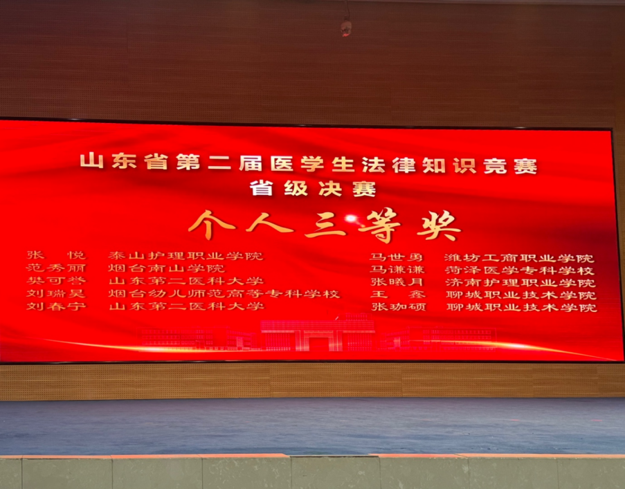 10月22日,第二届山东省医学生法律知识竞赛圆满落幕。由康复系史凤鸽、药学系张悦、护理系张谦三名同学组成的学院代表队以总分第八名的成绩斩获团体三等奖。