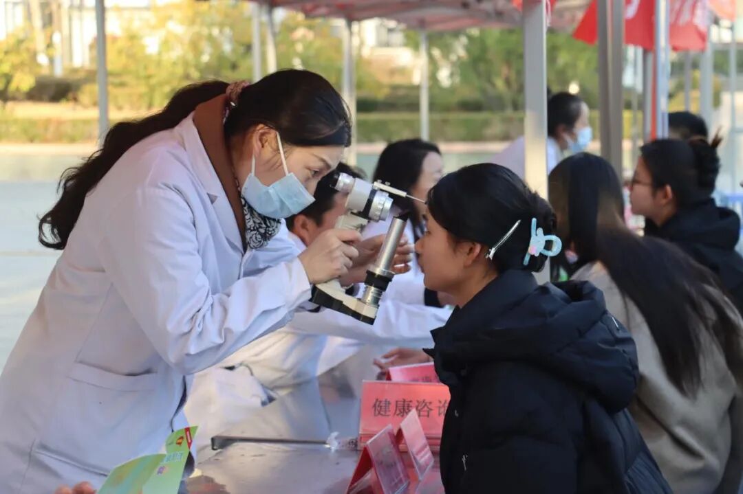 与此同时,活动现场设置了多个服务专区。义诊项目涵盖血压测量、体格检查、疼痛康复、医学美容及干眼症检查等,医务人员细致地为师生提供健康咨询与诊疗服务,帮助大家了解常见病防治知识,增强自我保健意识。
