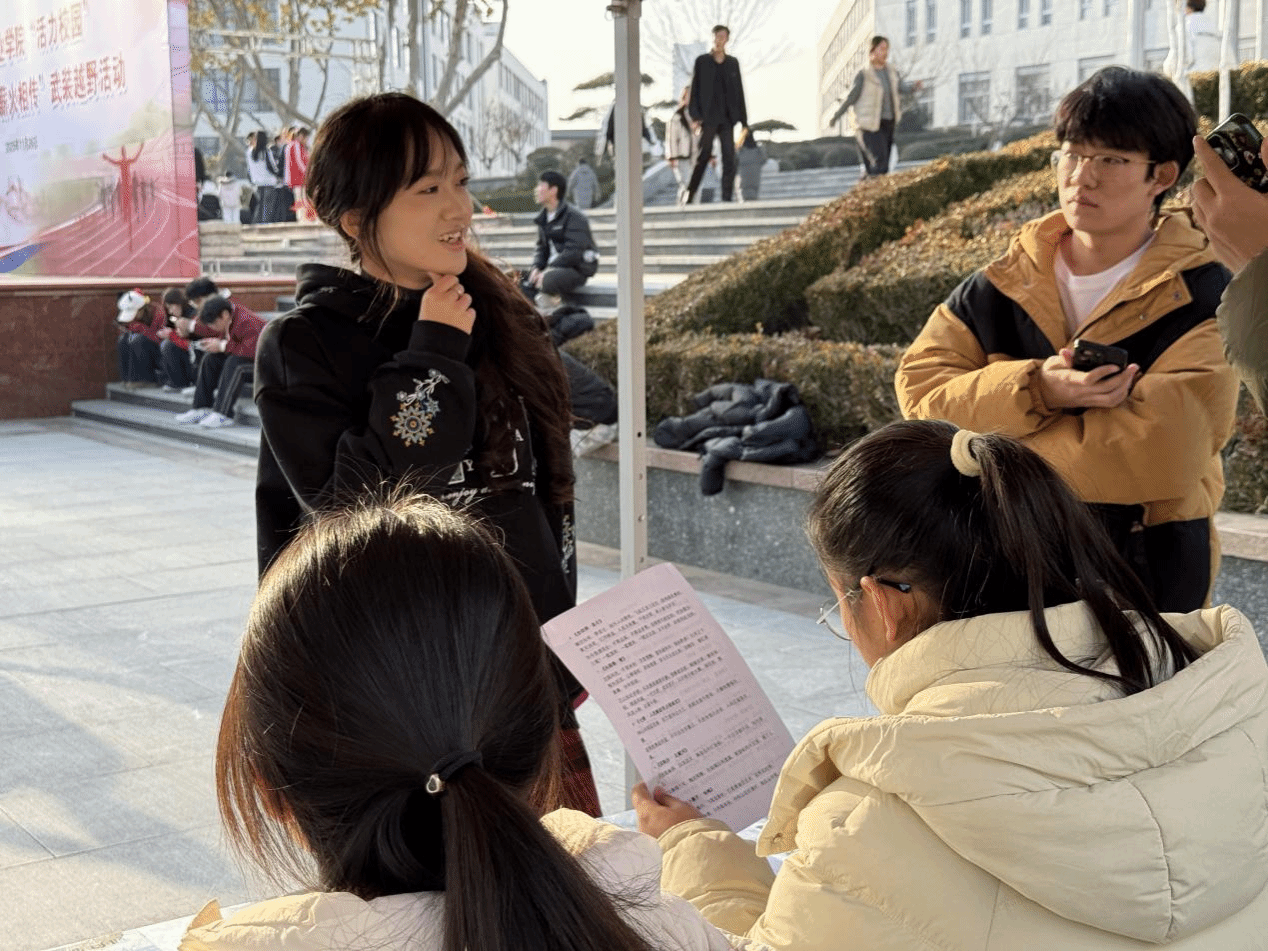 除了体能比拼,活动还设置了 “红色诗韵沁心田”“理论星探登战擂” 等红色主题环节。同学们深情诵吟经典红色诗词,字字铿锵、饱含深情;沉着应答国防军事理论知识,思路清晰、对答如流,充分展现了新时代青年学子深厚的文化素养、强烈的国防意识和坚定的理想信念。