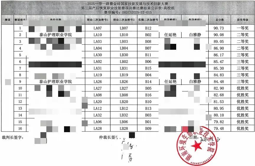 近日,2025“一带一路”暨金砖国家技能发展与技术创新大赛第二届产后恢复职业技能赛项总决赛在湖南环境生物职业技术学院成功举办。学院助产系选派的两支参赛队伍凭借出色表现,在比赛中取得优异成绩:其中一队荣获团体二等奖(位列该奖项第一名),另一队获得团体三等奖。指导教师任延艳、白雅静被评为“优秀指导老师”,学院同时获颁“优秀组织奖”。