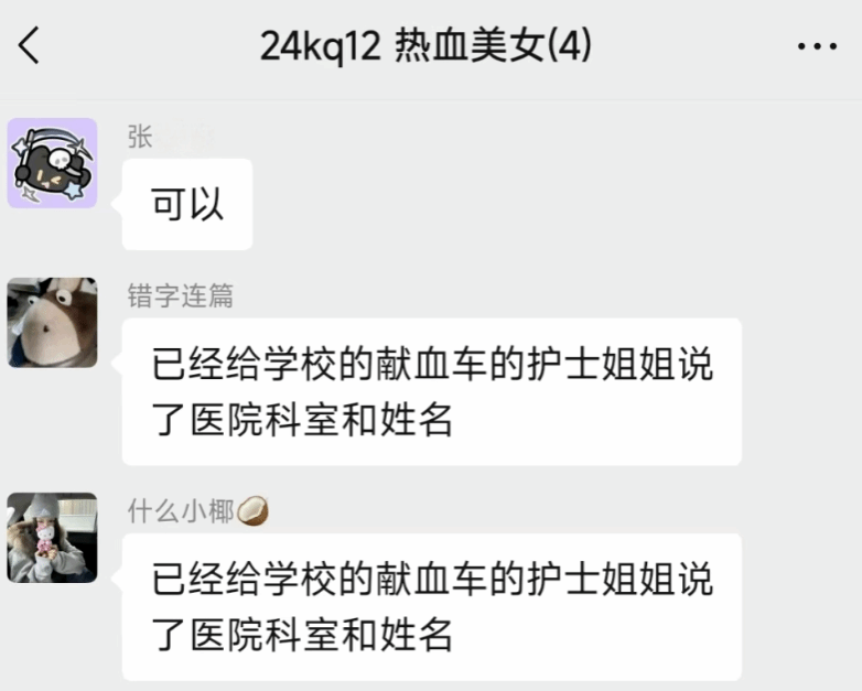得知这一情况后,辅导员立即在班级“热血青年”联络群中发出呼吁,询问献血的同学们是否愿意将宝贵的血液指名用于救助该同学。