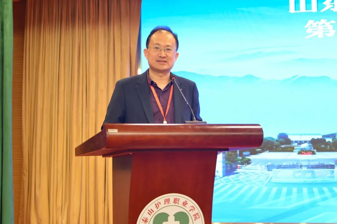 山东省健康管理协会专家委员会副主任、济南市卫健委原二级巡视员马其江,山东省健康管理协会副秘书长付新龙,学院党委副书记、院长荆丽艳,党委委员、副院长游晓功,党委委员、教务处(教师发展中心)处长(主任)黄皓,菏泽学院和潍坊护理职业学院等部分省内院校、健康管理协会负责同志、专家,大赛组委会代表、裁判代表、各参赛代表队领队及学院师生代表参加大赛开幕式。开幕式由游晓功主持。