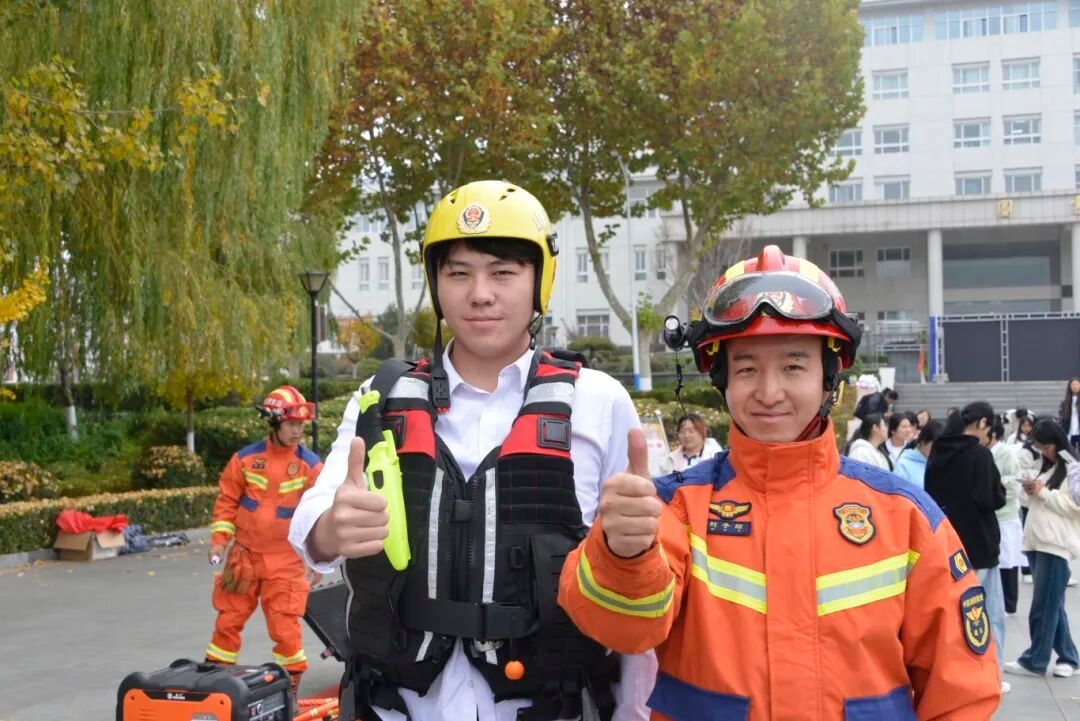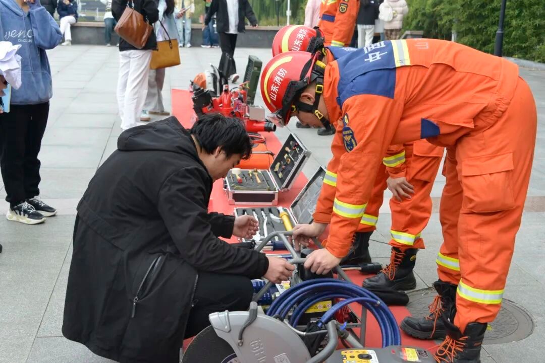 驻地消防支队和学院保卫处安排了消防知识宣讲、消防装展示、消防逃生屋体验等项目。在互动体验区,消防专业工作人员现场讲解消防安全知识、展示装备,学生热情参与、积极体验。