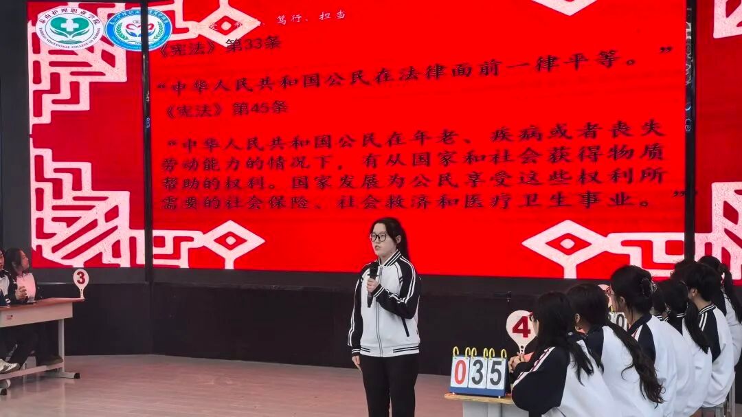 12月11日,泰山护理职业学院护理系在大学生活动中心举办“宪法在我心,青春法治行”宪法知识竞赛决赛。