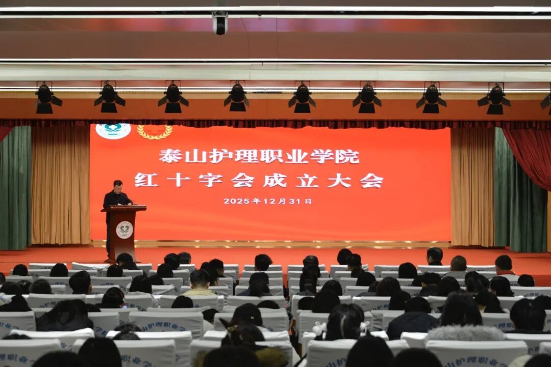 2025年12月31日,泰山护理职业学院红十字会成立大会暨第一次会员代表大会召开,市红十字会党组书记、专职副会长徐学森出席活动,学院党委书记杨建全主持大会。