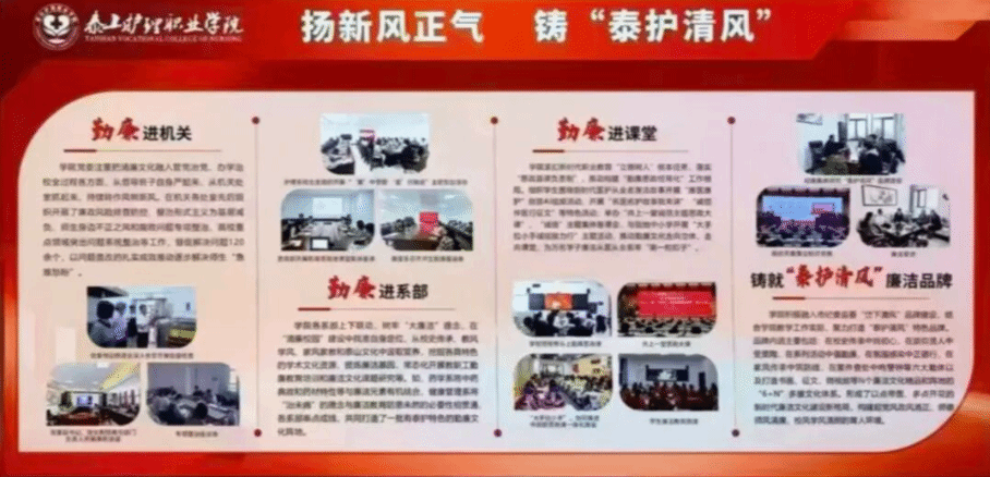 在“清廉校园”展区,学院纪委以“泰护清风”廉洁品牌建设为主线,突出展现了在党委统一领导下,依托“清廉教育熏陶、清廉制度规范、清廉实践多元、案查推动清廉”四大实践载体,推动勤廉文化进机关、进系部、进课堂的扎实举措。
