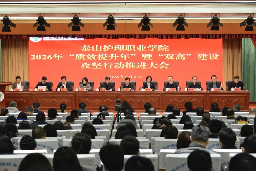 3月5日上午,学院召开“质效提升年”暨“双高”建设攻坚行动推进大会,进一步统一思想、凝聚共识,对标先进、冲刺发力,全面做好新学年特别是“双高”院校建设各项工作,奋力开创学院高质量发展新局面。学院领导班子成员、副科级以上干部、全体教职工参加会议。