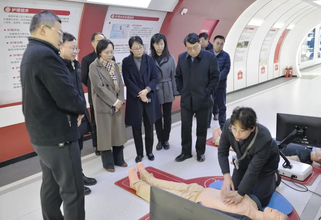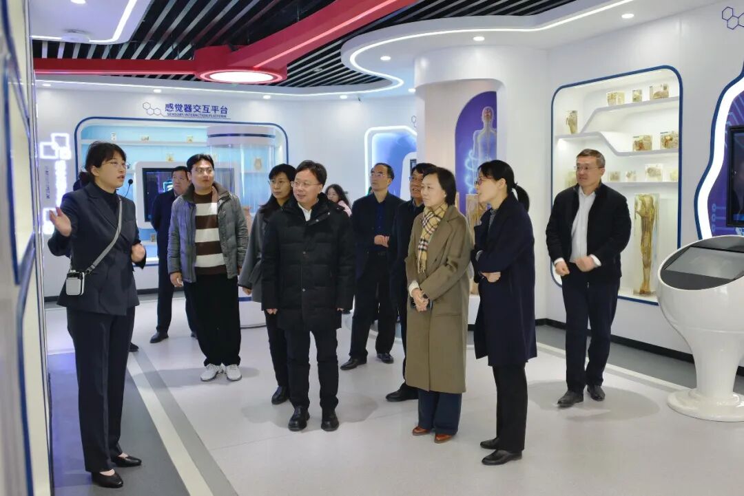 调研组一行实地走访各展区,沉浸式体验特色展项,深入了解场馆在科普教育、健康传播、技能实训、社会服务等方面的建设成果与运行经验。调研组认真听取了场馆功能布局、科普服务体系构建及面向不同群体开展科普活动的情况介绍,对场馆将数字科技、虚拟现实等现代技术与生命健康科普深度融合的创新做法给予高度关注和充分肯定,并对学院依托护理专业特色深耕生命健康科普领域、积极履行社会公益责任的举措表示赞赏。
