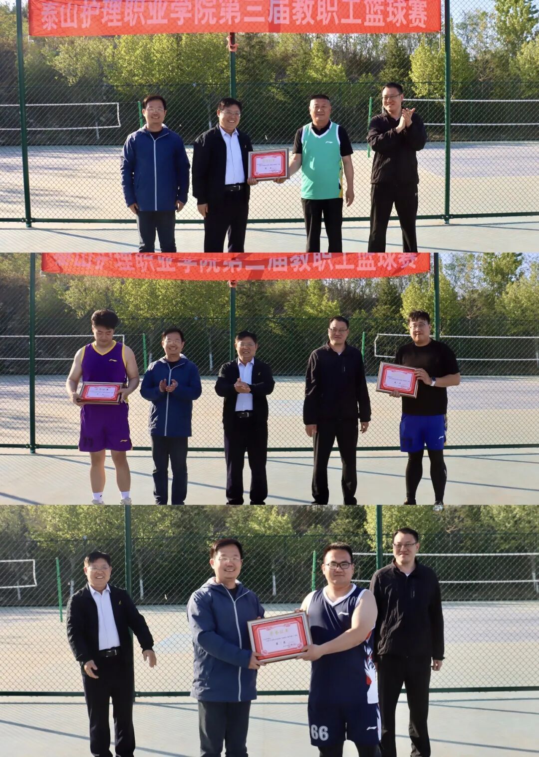 近日,泰山护理职业学院第三届教职工篮球赛结束。本次比赛由学院工会与公共教学部联合主办,来自13个基层分会的教职工组队参赛。赛事历时三天,采用单循环赛制决出名次。最终,初心逐梦队夺得冠军,无畏先锋队荣获亚军,亚洲龙队获得季军,三龙开泰队获得优秀组织奖。