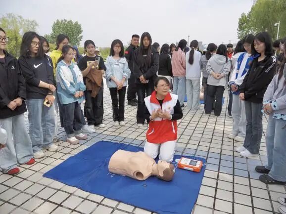 集结完毕后,活动转入现场培训环节。校医现场讲解并演示心肺复苏(CPR)、自动体外除颤(AED)等急救方法;消防教官讲解灭火器等消防器材的使用方法。