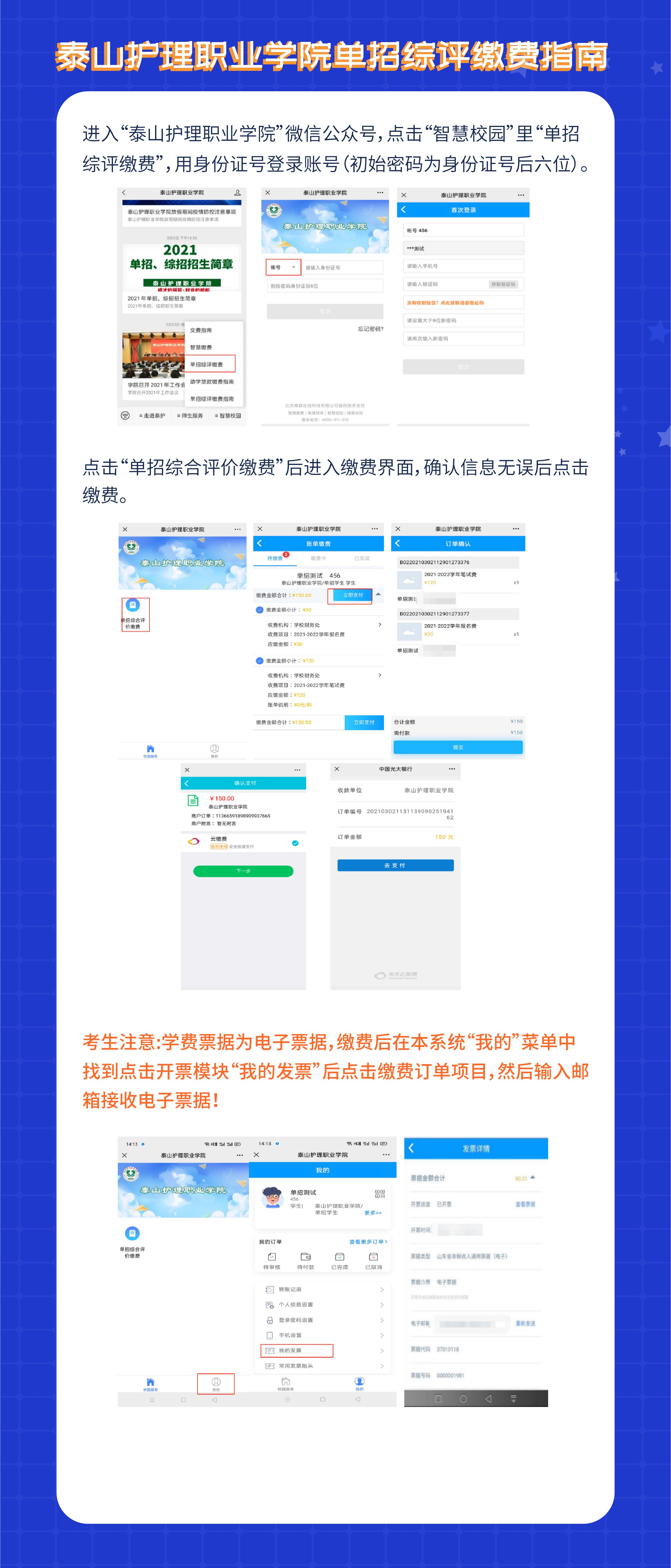 泰山护理职业学院单招综评缴费指南