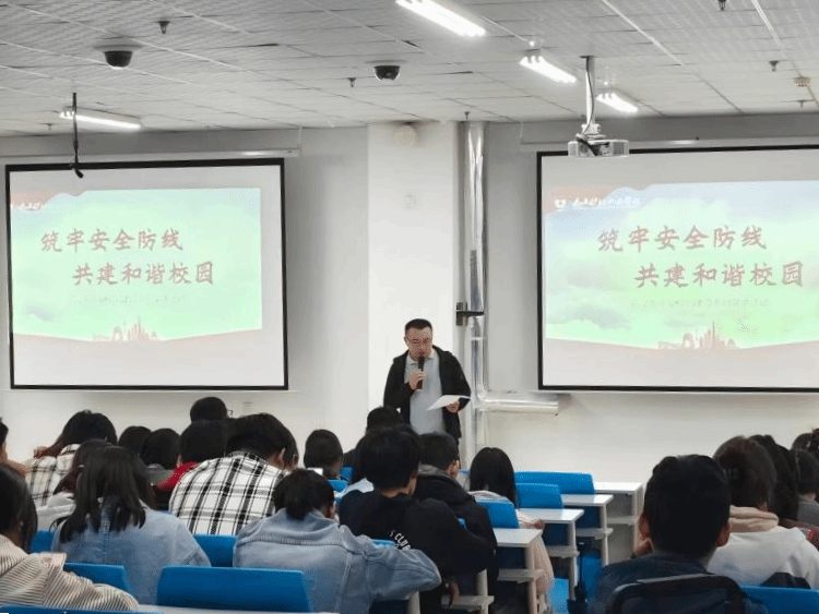 本次活动聚焦校园食品安全,关注学生日常饮食中的潜在风险。张晓坤同学结合自身兼职经历,生动剖析了外卖食品在原料采购、加工制作及配送环节中可能存在的安全隐患,引导同学们增强食品安全意识,主动选择正规、健康的餐饮渠道,从源头上筑牢饮食安全防线。学管老师殷俊虎在总结中强调了食品安全对平安校园建设的重要性,呼吁同学们将安全意识“内化于心、外化于行”,提升自我保护能力,共同维护校园安全稳定,为构建健康、和谐的校园环境贡献力量。