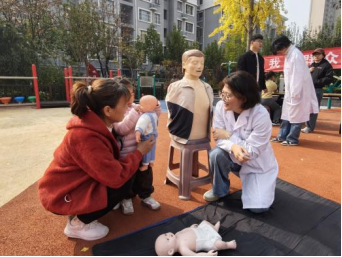 活动现场,助产系党员教师结合专业特色,聚焦居民健康需求开展系列服务。一方面,通过设置健康咨询台,为到场居民免费测量血压,细致询问身体状况,针对老年人常见的血压波动问题给出个性化调理建议;另一方面,以通俗易懂的语言开展健康卫生知识普及,内容涵盖老年常见疾病预防、日常保健要点等,切实提升居民健康管理意识。此外,教师们还现场演示海姆立克急救法的操作步骤,通过“理论讲解+实操示范”的方式,手把手指导居民掌握关键动作要领,帮助大家学会在紧急情况下自救互救。