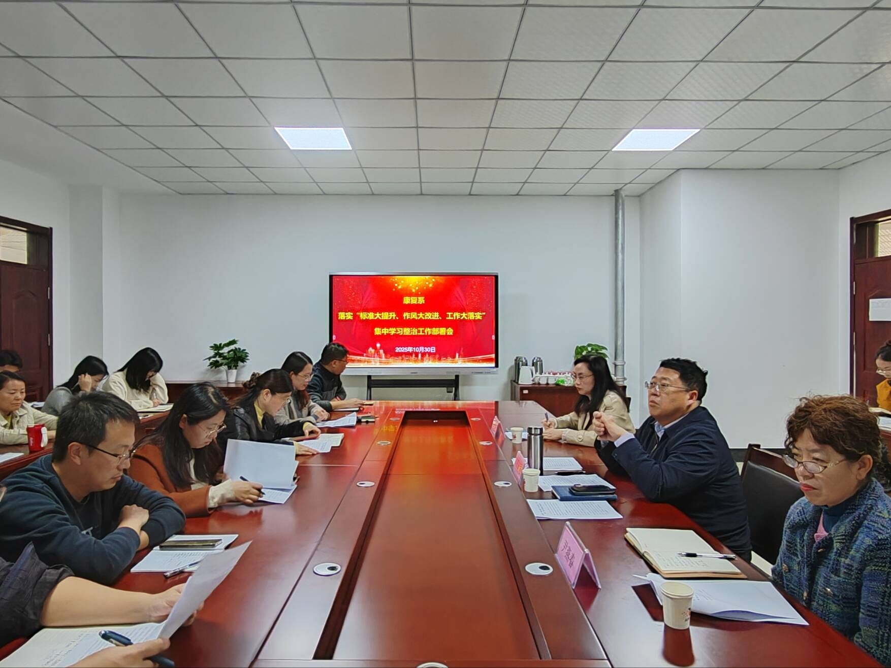 为深入贯彻学院“标准大提升、作风大改进、工作大落实”工作要求,通过凝聚共识、压实责任为系部工作提质增效蓄能,康复系于10月30日下午召开专项整治工作部署会。学院党委委员、副院长王安民,纪委办公室主任、整治专班成员尹燕春,康复系负责人高娜及全系教职工参加会议。