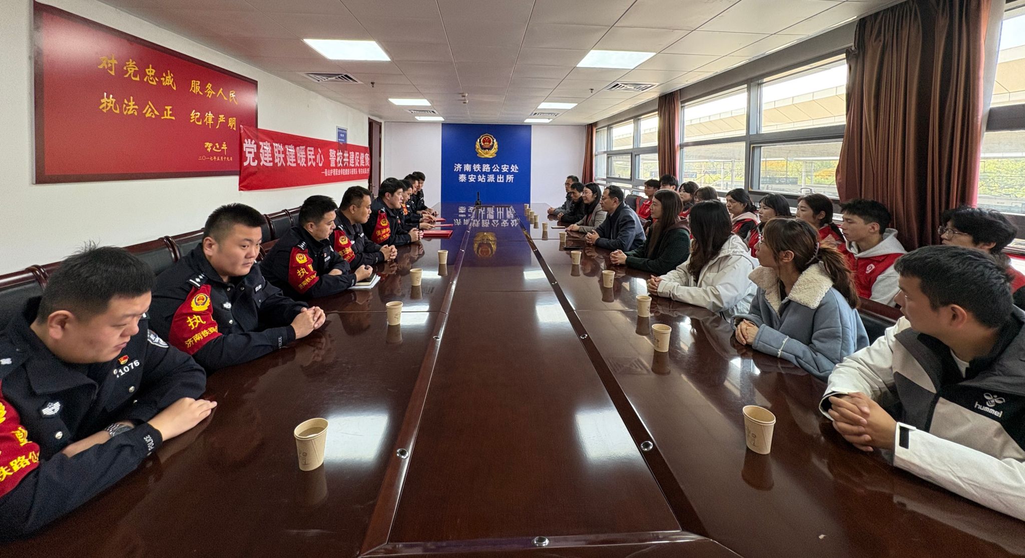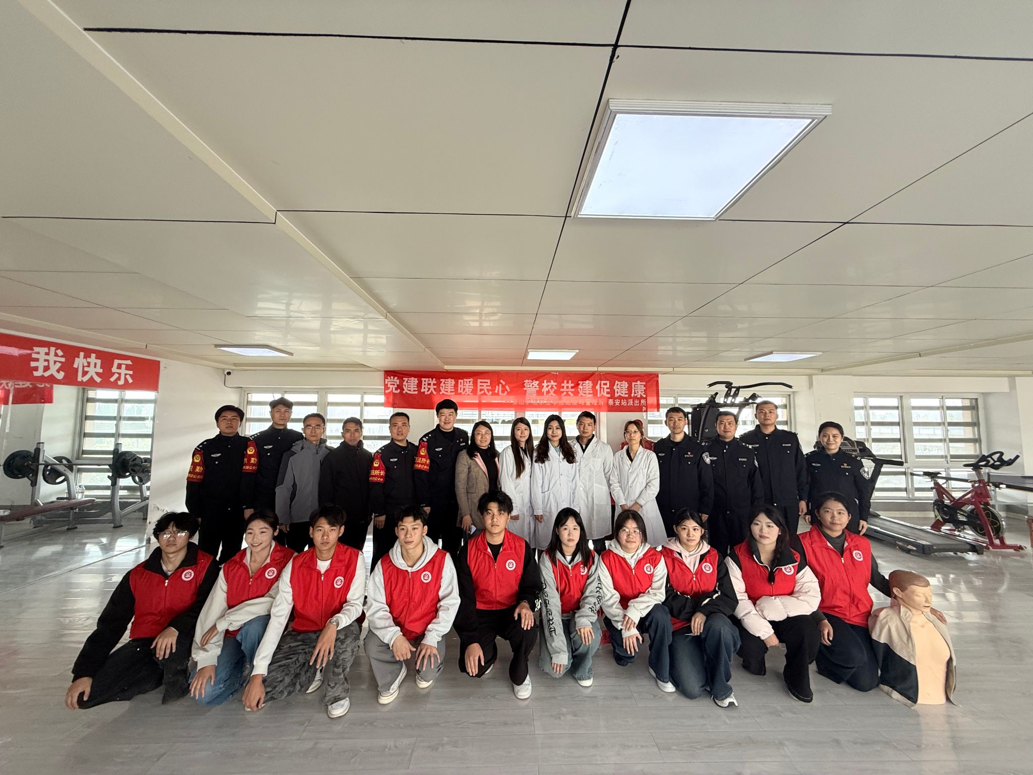 为深化党建引领作用,推动警校资源共享、优势互补,10月29日上午,健康与管理系与泰安站派出所联合开展“党建联建暖民心 警校共建促健康”主题活动,以专业服务传递关怀,以共建合作凝聚合力,让平安与健康同行。