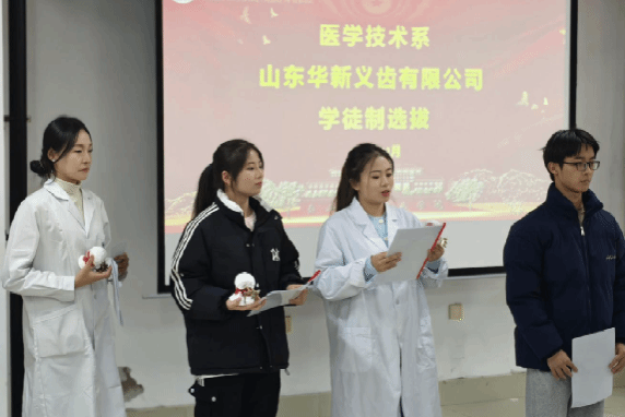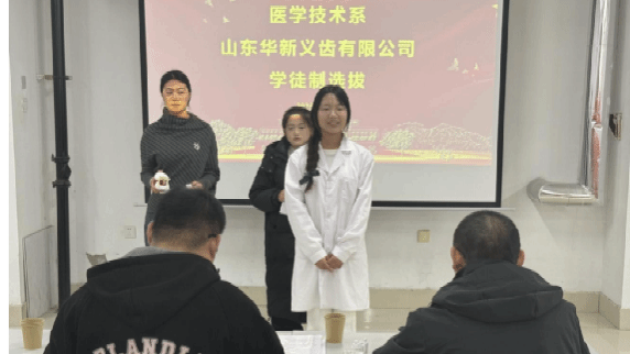 为深化产教融合、推进校企合作,实现医学技术类人才培养与行业需求精准对接,近日,泰山护理职业学院医学技术系特邀山东华新义齿有限公司进校开展企业宣讲及学徒制招生选拔活动,为专业学子搭建校园学习与行业实践的直通桥梁。党委委员、副院长游晓功参加本次活动。