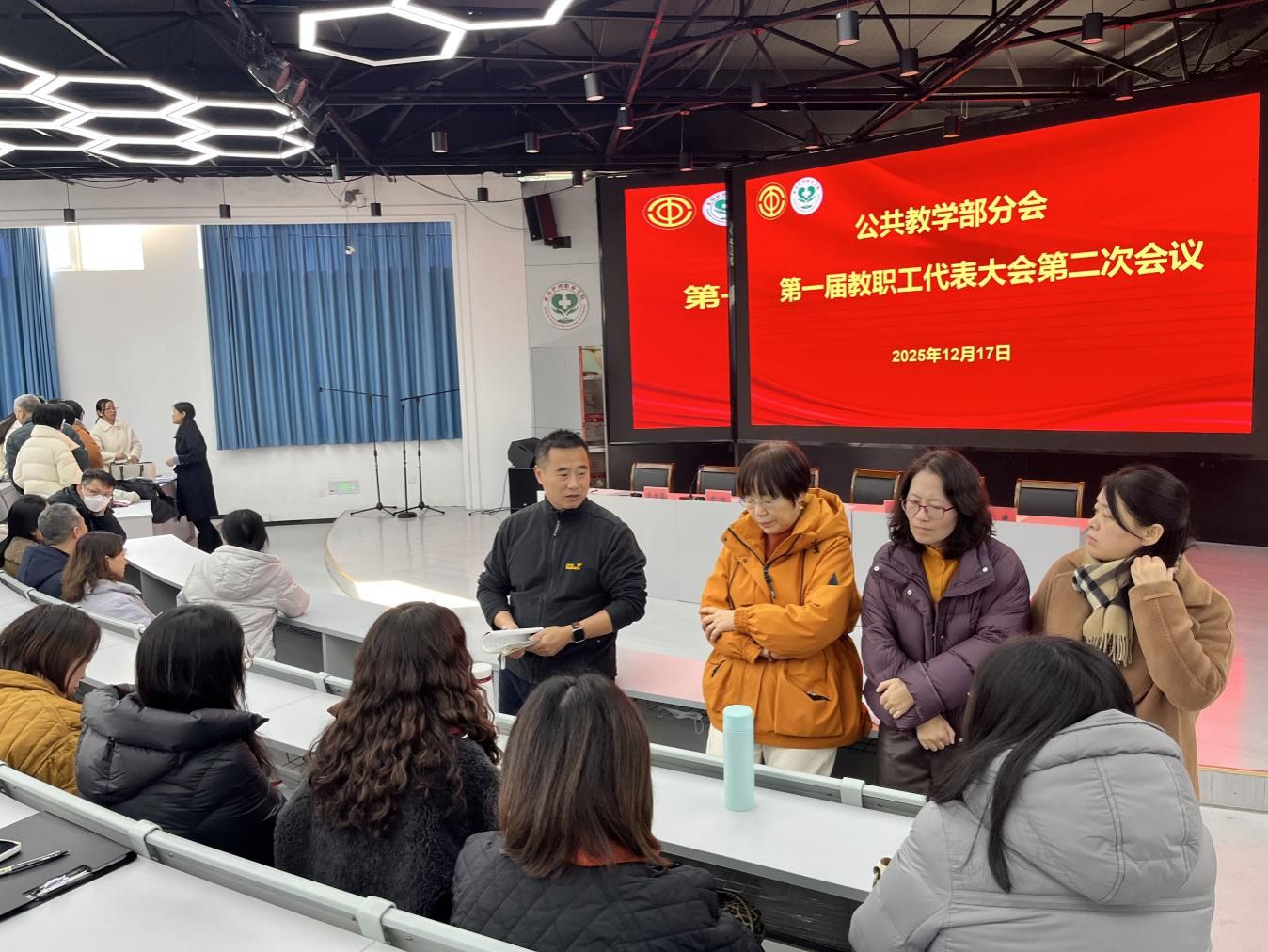 会议听取并审议了《公共教学部2025年度工作总结和2026年工作计划》《公共教学部分会工作报告》《公共教学部“十五五”发展规划》《公共教学部教职工代表大会实施办法》及教职工提案工作报告。与会教职工分组开展讨论,就相关工作提出建议。