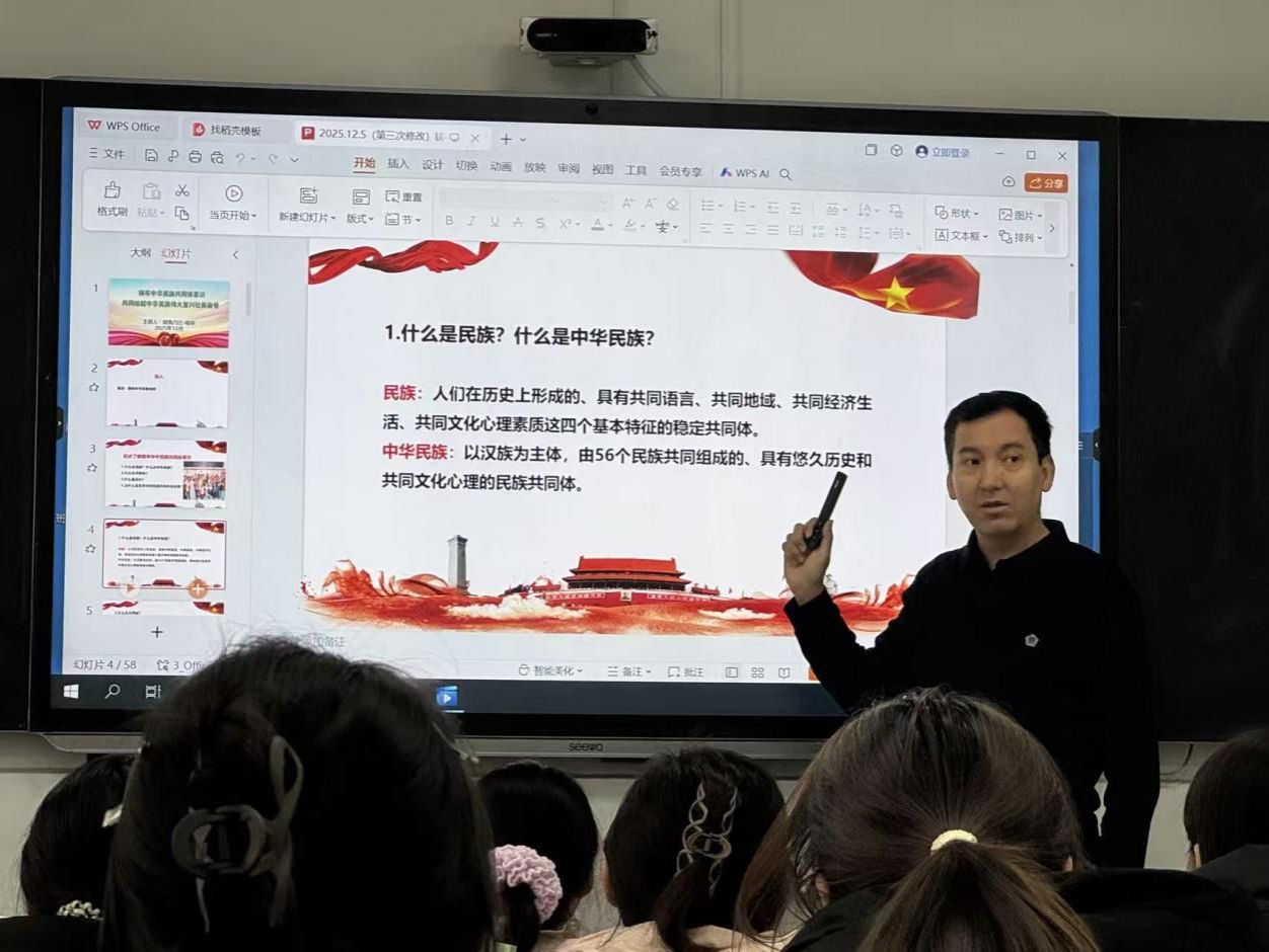 课程从“新形势下党的民族工作的时代背景”“铸牢中华民族共同体意识的科学内涵和重大意义”“坚持以铸牢中华民族共同体意识为主线”三个维度进行阐述。主讲教师结合个人经历、新疆风土人情以及来鲁见闻,生动讲解了“休戚与共、荣辱与共、生死与共、命运与共”的民族共同体理念,引导学生深刻认识铸牢中华民族共同体意识的重要意义,并鼓励学生立足专业,在服务各族群众的实践中自觉践行。