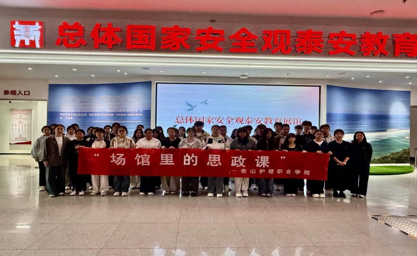 在总体国家安全观泰安教育展馆,学生通过观看宣传片、参观图文展板、体验互动设备,系统学习总体国家安全观核心内容,并结合公共卫生防控专业知识,深化对公共卫生安全、生物安全的认识。