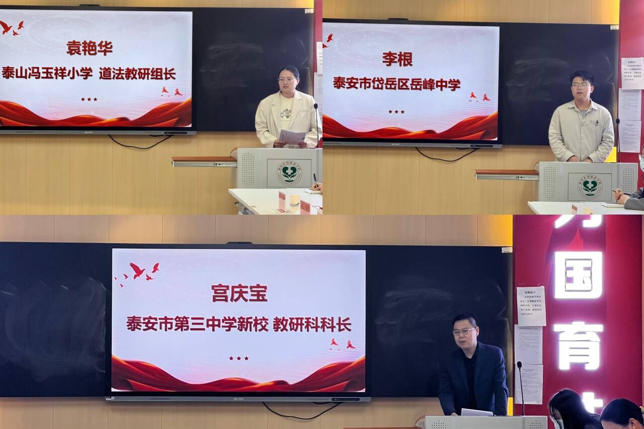 三所合作学校代表分别分享学段思政育人经验:泰山冯玉祥小学以非遗、经典诵读夯实小学思政启蒙;岳峰中学介绍“五融四课三提升”首课范式等育人体系;泰安三中分享“一体两翼三维”等建设成果,首课思政成效显著。各校均表示将全力配合课题实施。