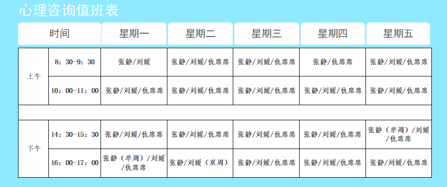 认识你的咨询师 & 值班时间表