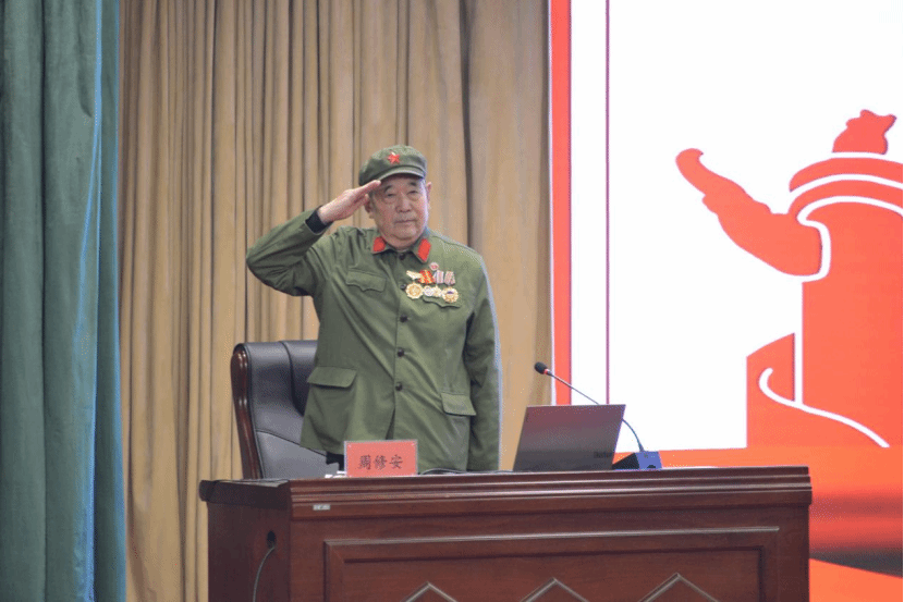 活动现场气氛庄重而热烈,黄皓处长首先对活动背景、目的及到场嘉宾进行介绍,他表示,在纪念中国人民抗日战争暨世界反法西斯战争胜利 80 周年的重要节点,开展此次英烈文化进校园活动意义非凡,希望全体师生能珍惜与老红军面对面交流的机会,从革命历史与英烈事迹中汲取精神力量。