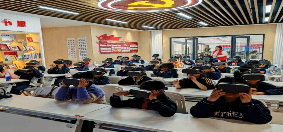 同学们戴上VR眼镜,穿梭于虚拟与现实之间,在老师的引导下,一场奇妙的“穿越时空”之旅正式启程。