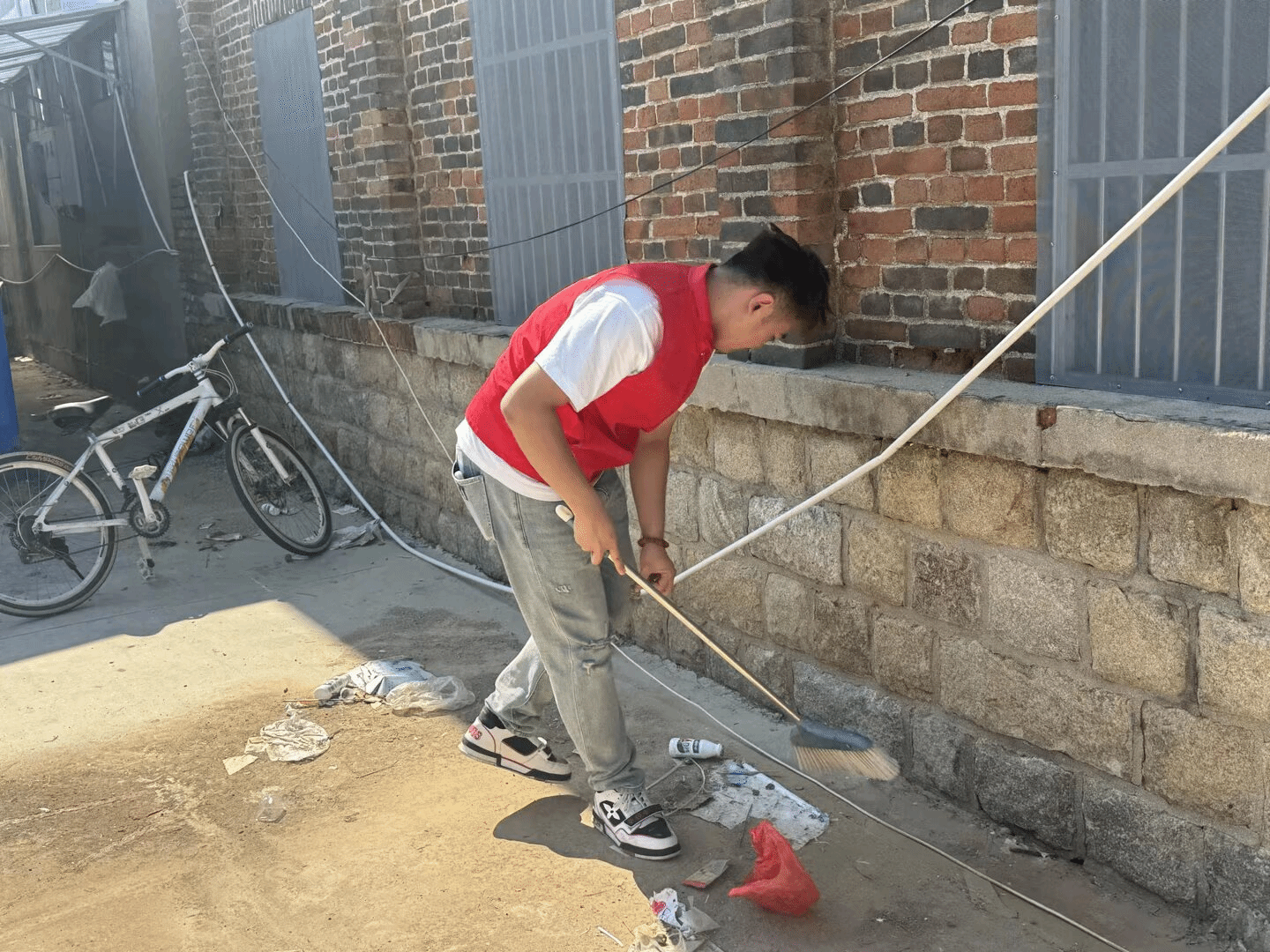 除了知识宣讲,志愿者们还拿起扫帚、夹子等清洁工具,对村委、绿化带、公共广场等区域进行全面清扫。大家不怕脏、不怕累,仔细清理隐藏在角落的烟头、纸屑、包装袋等垃圾,经过大家的努力,原本散落垃圾的街道焕然一新。