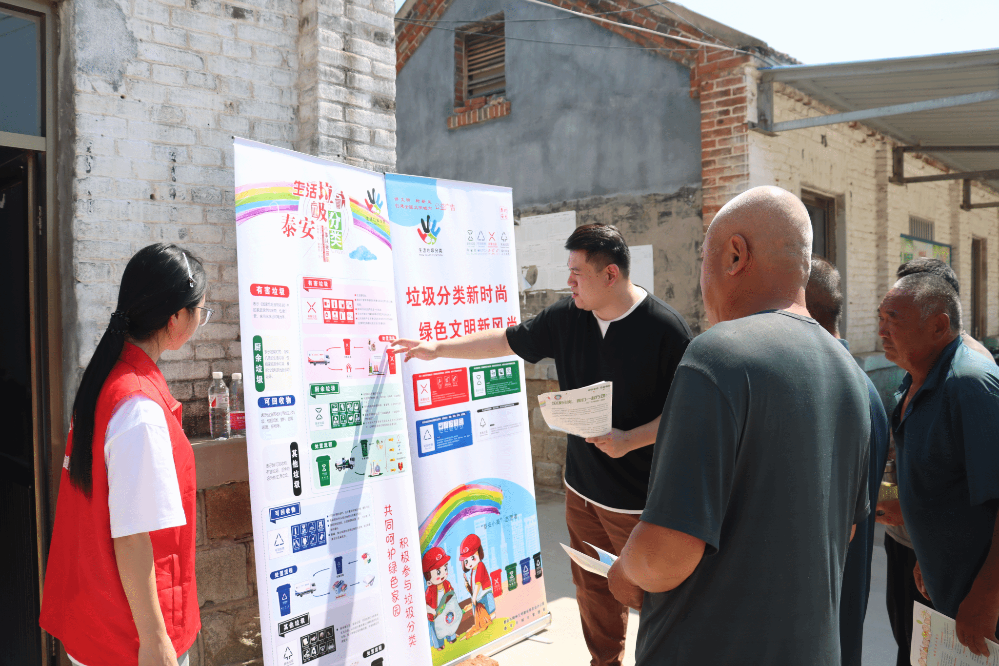 当日,志愿服务队抵达宁阳县葛石镇官庄村村委,在泰安市城市管理局工作人员的指导下,志愿服务队转战乡村环保一线,开展垃圾分类与环境保护实践活动。