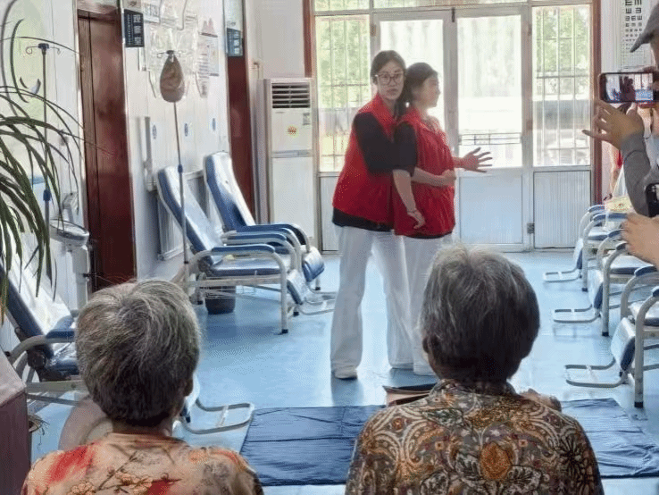 同时,针对儿童、老人易发生的异物卡喉情况,志愿者们专门演示了海姆立克急救法。将海姆立克急救法的“剪刀、石头、布”定位手法和冲击技巧都进行了细致的讲解和示范,让村民们明白在异物卡喉的紧急时刻,如何快速有效地帮助患者排出异物,解除气道梗阻。现场的村民仔细观摩每一个动作细节,还不时拿出手机记录要点。