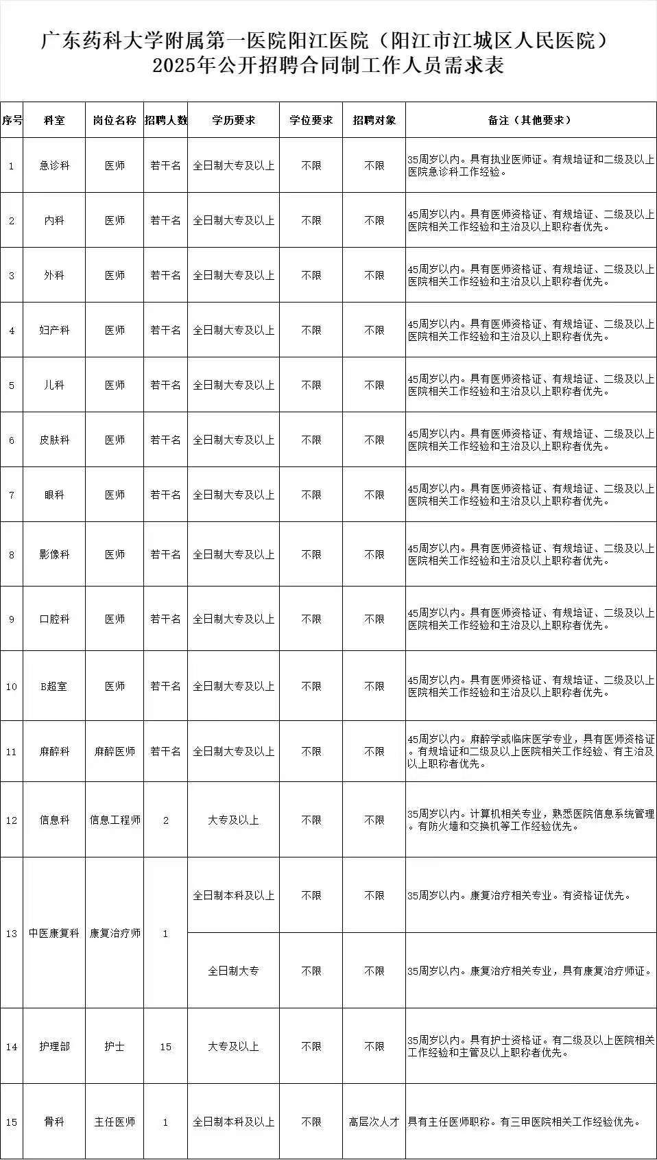 信息科、中医康复科、护理部、骨科岗位截止时间为2025年8月25日,其余岗位自公告发布之日起至发布报名截止公告为止。