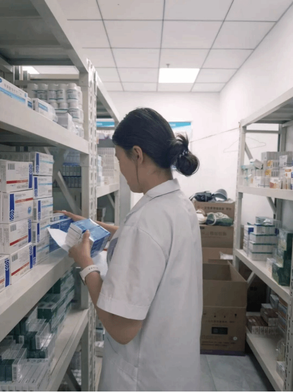 在基层卫生院的药品库房,身着白大褂的学子们化身“药品管家”。货架间,他们仔细核对药品信息,将一盒盒药品有序归类、精准摆放。每一次弯腰取药、每一回认真登记,都是对“用药安全”的郑重承诺。他们以专业知识为标尺,梳理药品库存、排查过期隐患,让小小的药库成为守护乡邻健康的坚固堡垒,用细致与耐心筑牢基层医疗的“第一道防线” 。