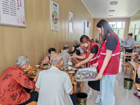 在长辈食堂里,身着红马甲的志愿者们忙碌穿梭。她们细心为老人摆放餐盘、添饭盛菜,询问老人口味喜好,提醒“饭菜慢慢吃,别烫着” 。面对行动不便的老人,主动帮拿餐具、搀扶就座,让食堂里满是温馨。老人们笑着说:“这些孩子跟自家晚辈一样贴心!”午间用餐结束,志愿者们迅速行动起来。她们穿梭在食堂的餐桌间,将碗筷分类整理,餐盘里残留的饭菜被仔细清理,勺子、筷子也被有序归置,不一会儿,杂乱的餐桌就恢复了整洁,志愿者们用点滴服务,把关怀融进每一餐。