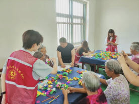 志愿者们在午饭后还组织趣味互动活动。在活动室里,志愿者和老人一起玩益智积木,手把手教老人搭建造型,欢声笑语不断。老人们专注投入,像孩子般兴奋展示成果,现场满是其乐融融的画面。这不仅锻炼了老人脑力,更让他们感受到陪伴的温暖。