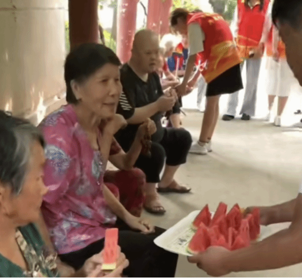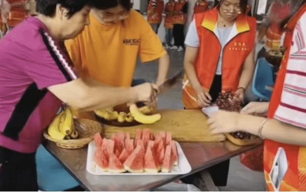 一进养老院大门,就被老人们的热情围住了,有的拉着我们的手问长问短,有的直往我们手里塞自己种的小番茄。我们把带来的苹果、香蕉摆在大厅的桌子上,洗干净切成小块装在盘子里,递到老人们手里。李奶奶牙口不好,我们就挑了软一点的香蕉递过去,她边吃边念叨:“这香蕉真甜,比超市买的新鲜。”