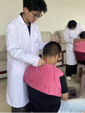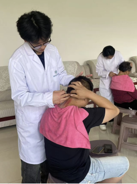 我负责为乡亲们进行颈部和肩部的中医理疗。面对第一位前来体验的叔叔,我内心既紧张又兴奋。我先仔细询问了他身体的状况,尤其是颈部和肩部是否有不适的症状。大叔告诉我,他因为长期伏案工作,颈部和肩部经常酸痛。