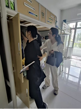 本次检查覆盖药学系各年级学生宿舍,检查组成员重点对宿舍内是否存在违规使用大功率电器、存放管制刀具等违禁物品进行了细致排查。同时,检查组还全面检查了宿舍的消防安全隐患、用电安全规范、物品摆放秩序以及整体卫生状况。对于检查中发现的部分宿舍存在的卫生死角、物品堆放杂乱、用电安全意识薄弱、部分宿舍不能做到开窗通风等问题,检查老师现场提出了整改意见,并要求相关班级宿舍立即整改。
