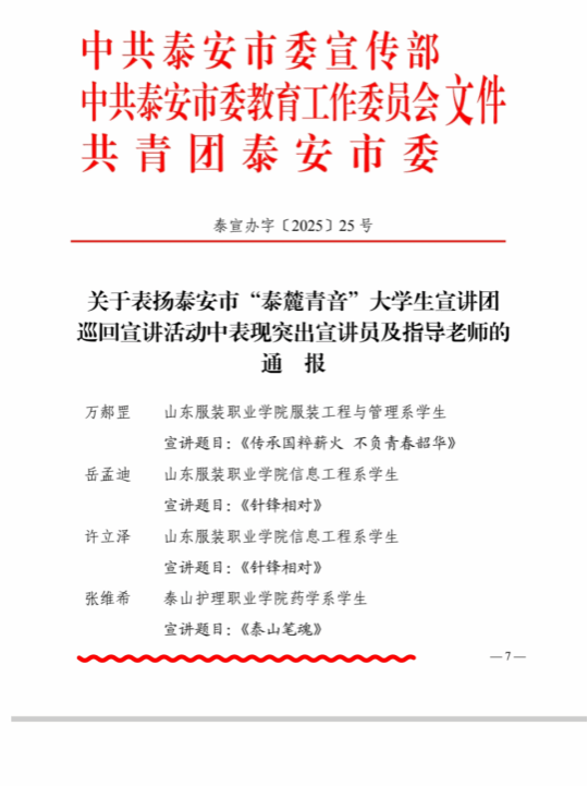此次获得泰安市的通报表扬,不仅是个人与集体的荣誉,更意味着药学系这种“融入地方文化、注重实践转化”的红色教育模式获得了社会与官方的高度认可。
