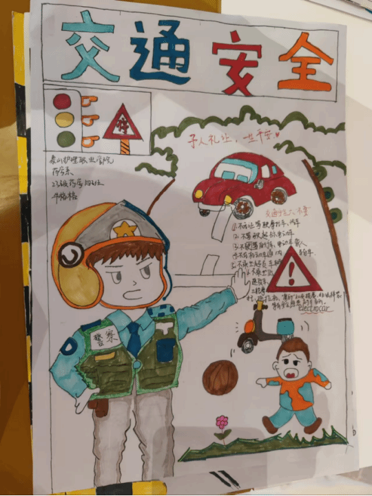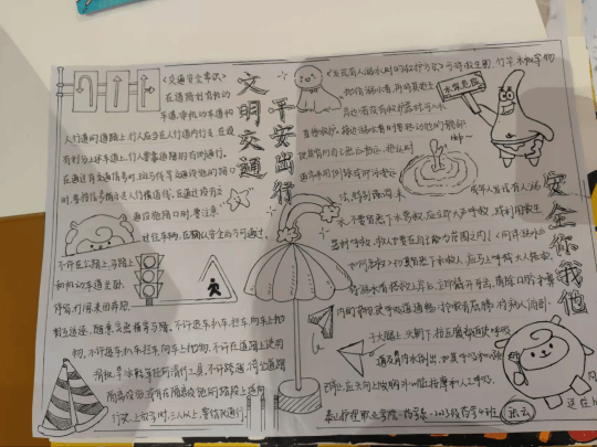 生命安全重于山,交通安全记心间。生命脆弱宝贵,美好生活来之不易。为了提高同学们安全出行文明出行的意识,学院积极开展“文明交通·平安出行”交通安全宣传教育活动,以减少意外的发生。此次活动以绘画形式展开,同学们都积极参与其中,纷纷描绘出契合主题的海报,促进了道路交通安全的宣传。