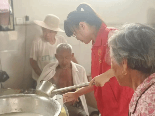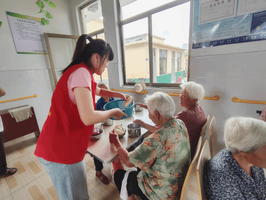 我和其他志愿者一起和老人们一起聊天,给爷爷奶奶倒茶,帮助他们打饭,刷碗…他们真的很温暖,一开始我还不知道要和他们聊什么,他们怕我尴尬就开始找话题和我聊天,无论我们聊什么他们的脸上都永远挂着笑容,让我感到很亲切。